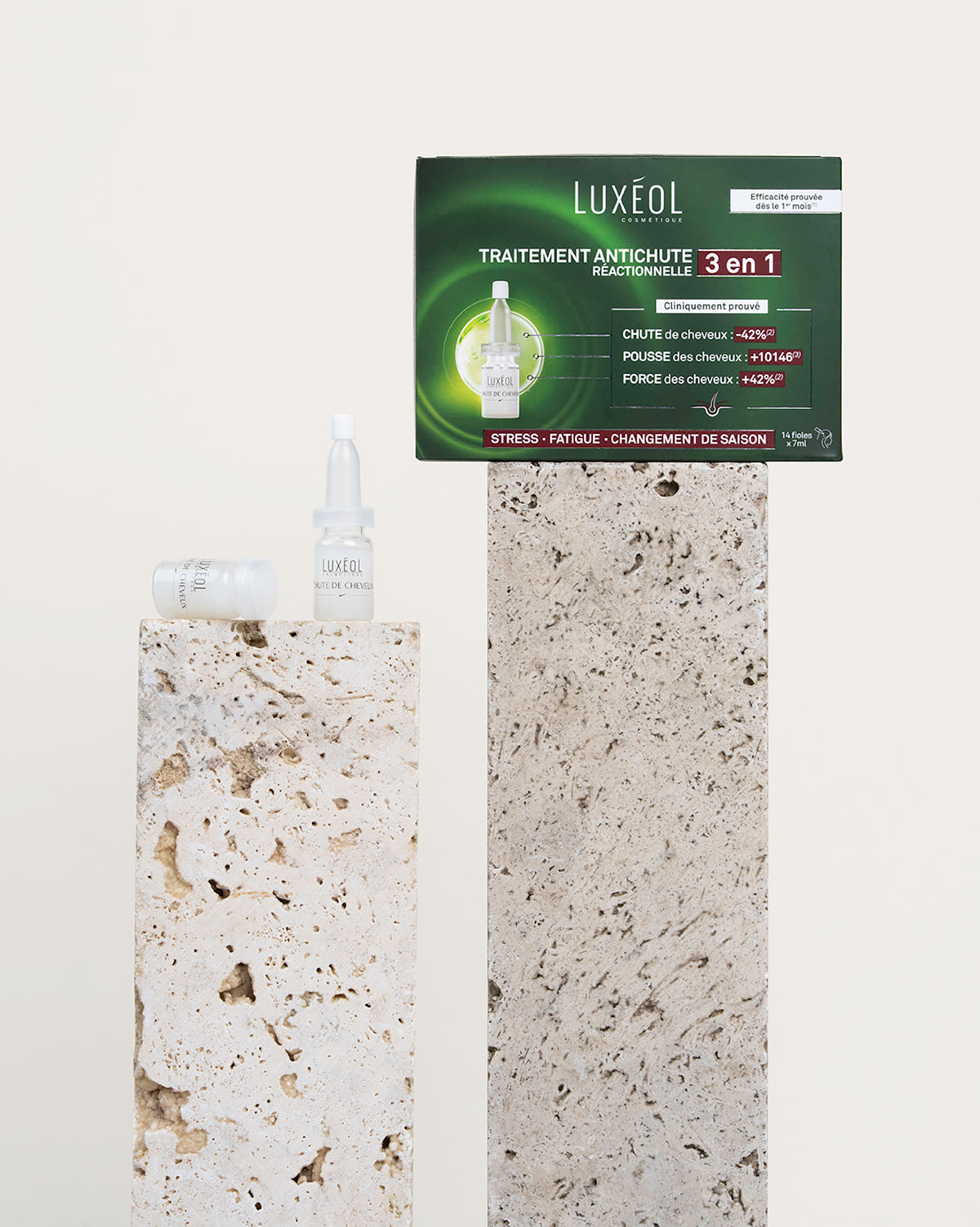 Adoptez le Traitement Antichute Réactionnelle 3 en 1, un protocole cosmétique à l’efficacité cliniquement prouvée pour freiner la chute de cheveux réactionnelle, agir sur la pousse et renforcer la chevelure.*
