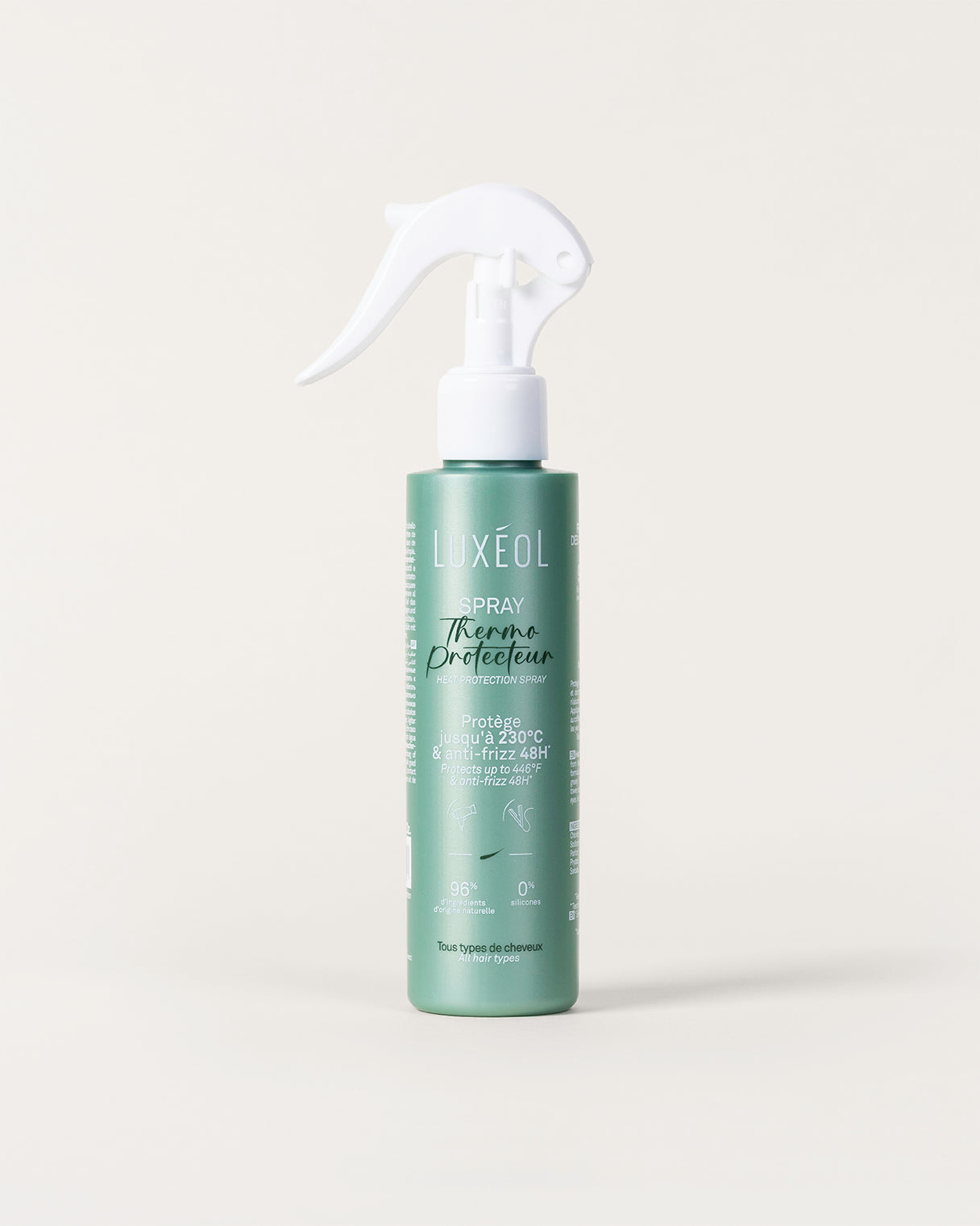Avec 96 % d’ingrédients d’origine naturelle, le Spray Thermoprotecteur Luxéol forme un film protecteur léger autour de la fibre capillaire pour limiter les dommages liés à la chaleur tout en maintenant douceur et brillance.