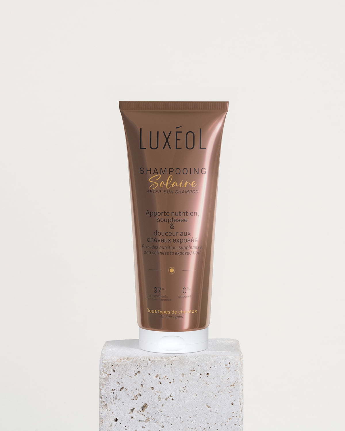 El Champú Sol está especialmente formulado para limpiar suavemente el cabello expuesto al mar o a la piscina.