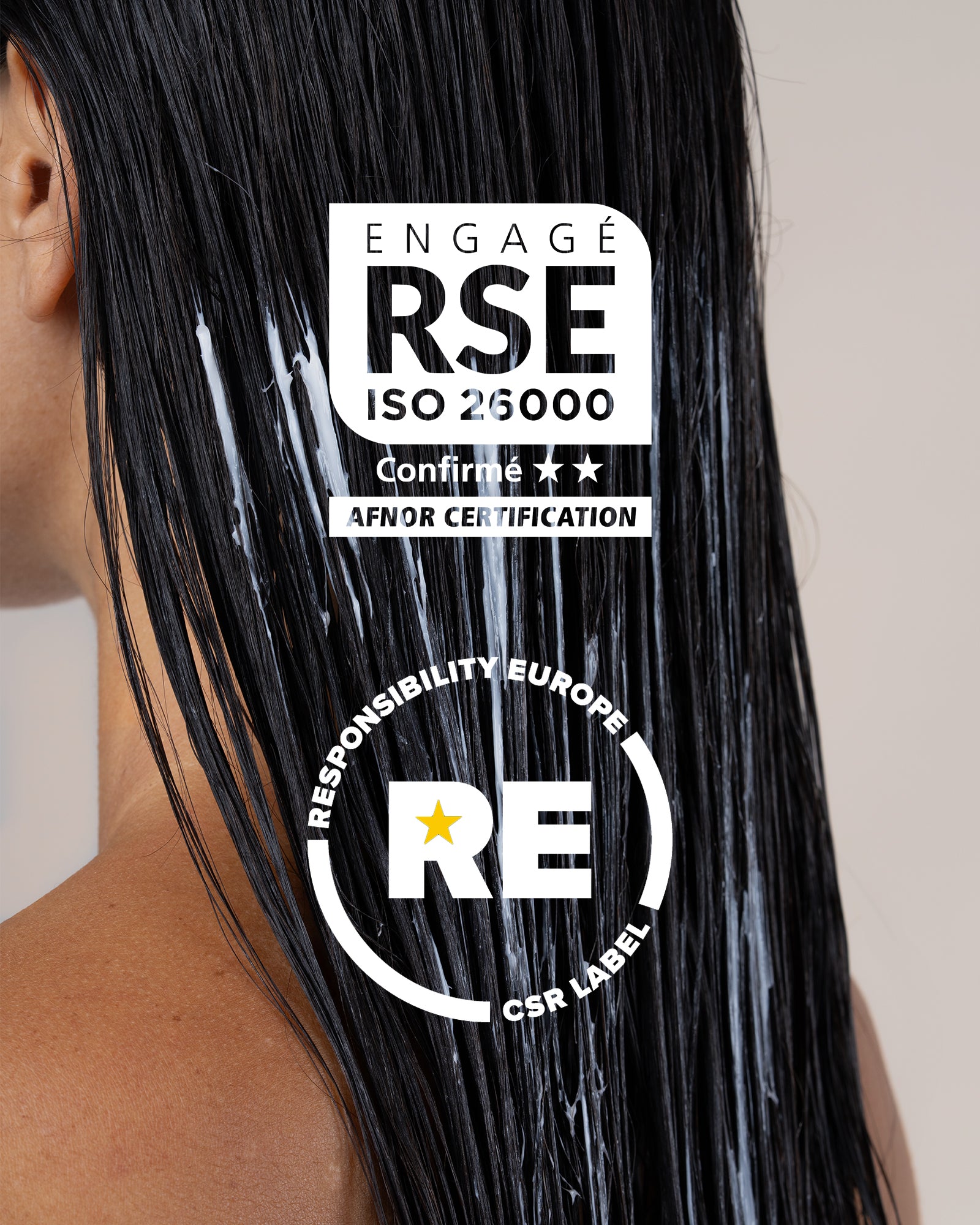 Nous nous sommes engagés auprès de l'association Coiffeurs Justes depuis janvier 2024. Notre engagement équivaut à la fabrication et l'installation de boudins de cheveux permettant de dépolluer 1 million de litres d'hydrocarbures dans des ports maritimes et des zones fluviales.