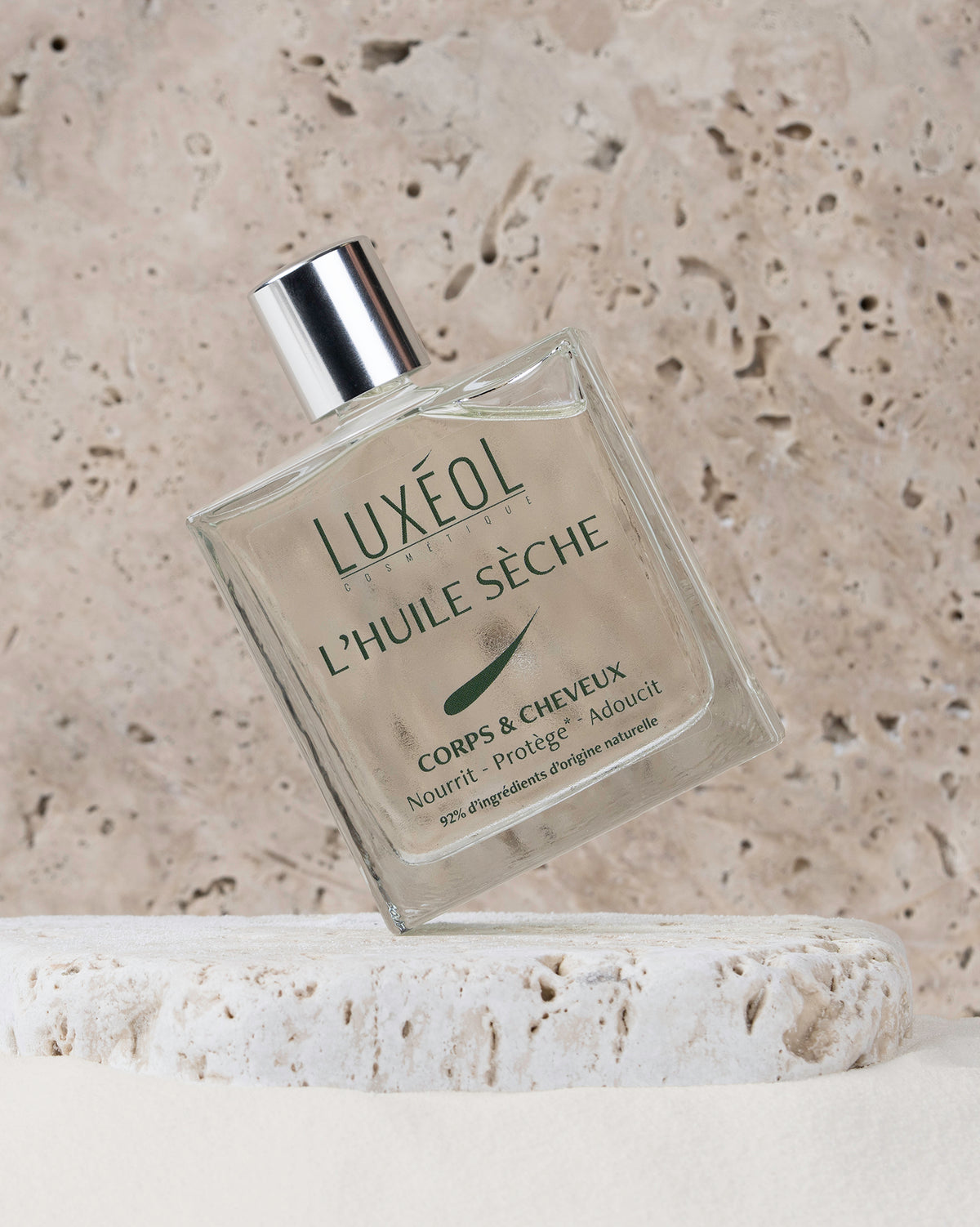 L’Huile Sèche Luxéol hydrate la peau et nourrit les cheveux. Grâce à sa formule composée à 92 % d’ingrédients d’origine naturelle, elle associe les bienfaits de l’huile d’argan, de l’huile d’avocat  de l’huile de rose musquée et de l'huile de tournesol.