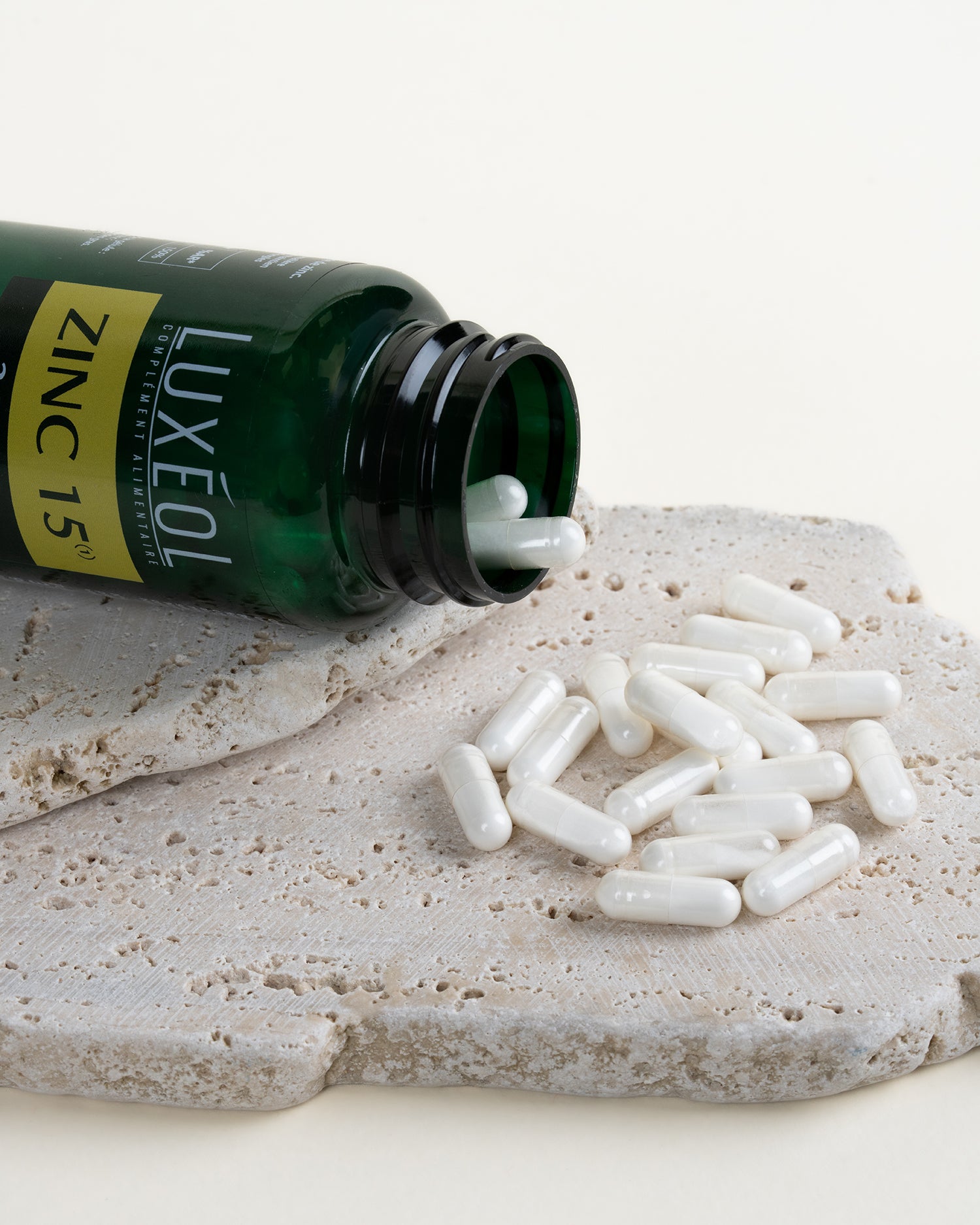 Chaque gélule apporte 15 mg de zinc, soit 150 % des apports de référence, un minéral antioxydant qui aide à protéger les cellules contre le stress oxydatif.